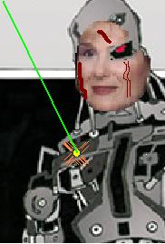 Superman tries to hit Lacinator with his laser vision.