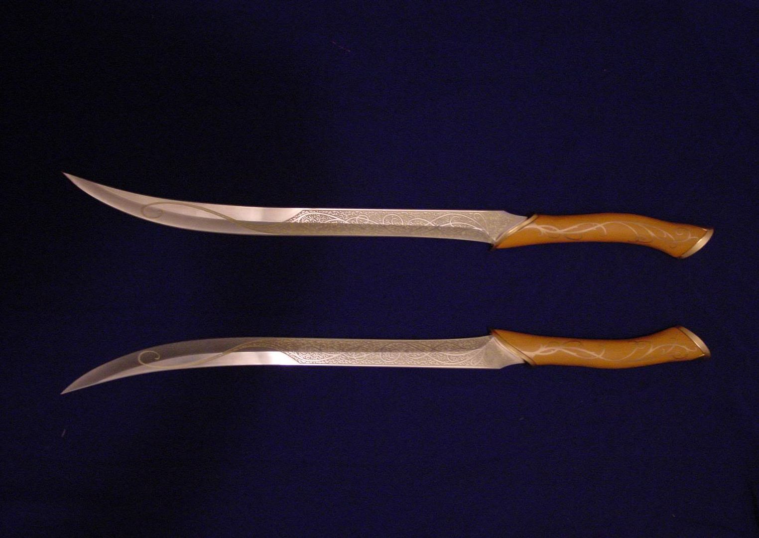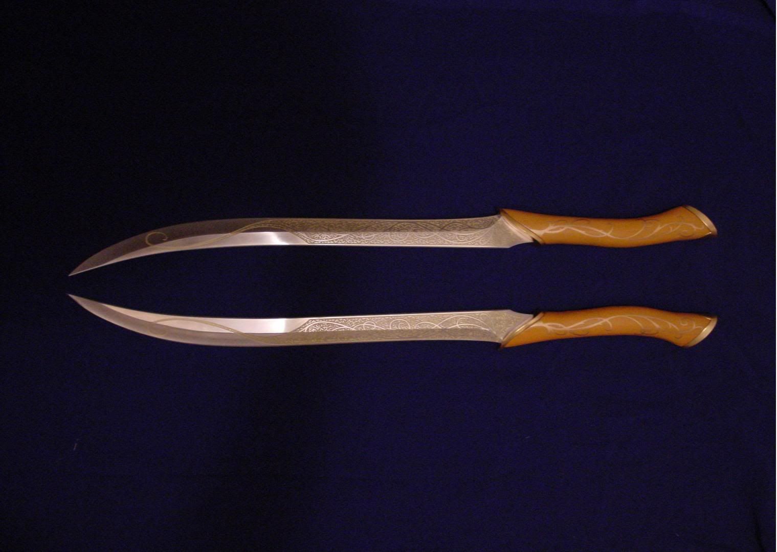 Elves possessed great magical powers, and the ability to create things of immense beauty, craft and enchantment, including weaponry, music, language, and lore. The Daggers of Legolas reflect that beauty, and were the perfect weapon for the "Assassin" Legolas. His skill with these daggers combined with his excellent marksmanship with the bow proved to be the death blow for many orcs and Uruk-Hai!