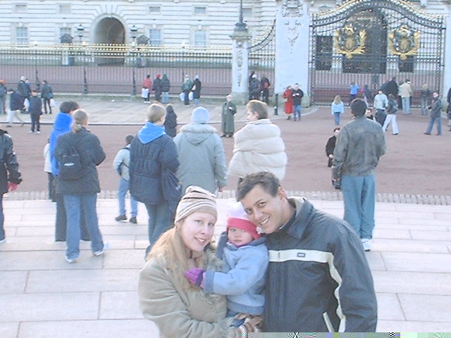 Dezzy, Mommy, and daddy at Buckingham Palace.