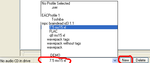 5. Save this profile as 'MPCq7' profile in EAC: Press 'New' and type in MPCq7 (instead of 7.5 ms15 xl as shown in picture):