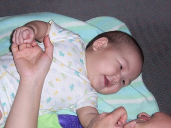 She just lights up when people speak Vietnamese to her. Mom and I are going to try to find a CD of nursery rhymes or lullabies to bring home for her so she can hear the sounds of her first language.