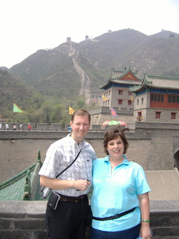 ....Today was our second day in Beijing. I started out this morning with another run. This time I ran to the Forbidden City and the Hutong area which we had visited yesterday on our tour. Seeing it without the tour group was a different experience. The Hutong area is an ancient housing area located just outside the Forbidden City. The homes are 400-600 years old and the streets wind around like lo mein noodles. I found myself in a large open-air farmers market. This is where Beijing'ers go each day to buy food and other stuff. I had to stop running because I found myself in a sea of people (I would guess 10,000) in a very small area almost shoulder-to-shoulder. As I walked through, I enjoyed looking at the different kinds and variety of the fresh fruits and veggies. I was sure to keep my hand on my wallet because everyone warned us about the pickpockets. The noise was intense because all of the vendors were yelling out their products and prices. I stopped for a little bartering but didn't end up buying anything there. It was a great experience. As I left the market area, I headed back toward the hotel and on the way I did stop at a little shop and purchased some bananas and great looking roses for Angela. The bananas and roses cost less than 2 American dollars. I think she liked the roses.... she was not too excited about the bananas. I had not expected to stop at the market so I was a little late getting back to the hotel. So, I had to rush the shower and a quick breakfast then back on the bus for our tour. Our first stop today was the Jade Factory and Market where we learned how to tell the difference between various qualities of jade. Angela figured it out rather quickly and found a beautiful jade bracelet that she just had to have. After the Jade Factory we headed on to the Great Wall. The Great Wall is the only man-made object on earth that is viewable from space. It was really spectacular. It was built to defend China from the Mongolians. We climbed up part of the way, but it is a very daunting climb....the steps have uneven height and are not all smooth, so it makes climbing rather difficult.
