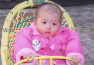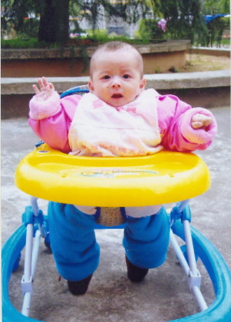 Cen Xiaobei: (Cen is the surname of children in the institute, Xiaobei means "bud".), female, was born on September 20th, 2004. She was found abandoned before the gate of Hengfeng Civil Affairs by the staff Wang Yonghong on September 30th, 2004 and sent into the institute the same day. When she was found, she was wrapped in the quilt and next to her were a bottle, 2 bags of milk powders and some clothes. We did a full check-up for her and she was in good health. Our doctor estimated her Date of Birth to be September 20th, 2004. She is living in the institute. She is healthy and develops well. When she was 1-month-old, she had good sucking ability and normal appetite. When she was 2-months-old, she began to laugh. When she was 3-months-old, she could make sounds like "Ah" and "Oh". When the caregiver talked to her, she would burble to reply. If the caregiver patted her hands, she would giggle. When she was 4-months-old, she could locate sound if she heard someone call her, and then smile to the one. If she woke up without seeing her caregiver, she would cry sadly. But she would stop crying as soon as she heard the caregiver’s voice. When she was 5-months-old, she began to understand adults’ facial expressions, recognize familiar people, and babble to people or objects. When she saw her bottle she would get very excited. Her thumbs are flexible. She would hold a toy but stare at another one. If the toy dropped down, she would look for it. She liked to listen to music. She could raise her head when sitting and could stand up with assistance. When she was 6-months-old, she became far more livelier. She could walk in the walker. All the staff at the orphanage love her very much. She likes them to take her to play outside. Now her main food is a mixture of milk powders, cereals and honey. She has 5 meals per day and about 200ml per meal. She also eats noodles, eggs and biscuits. She sleeps through the night with the light on and likes to sleep with her caregiver. She is outgoing and energetic. She likes shopping best. Urination and bowel movements are normal. Prepared by Hengfeng SWI March 25th, 2005