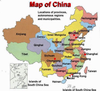 Map showing the provinces of China.