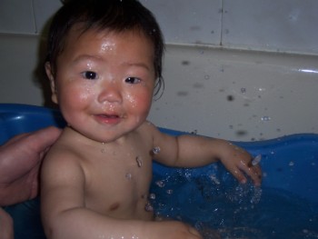 ![]() Here's a photo of Mae's first bath - and first giggles and smiles...
