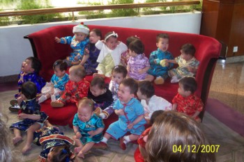 from the White Mountain ![]() In the afternoon we did the infamous "Red Couch" picture. Each adoptive group dresses their girls in traditional Chinese clothing and put them all on the red couch at the White Swan to take their picture. Most of them scream! It's really kind of cruel, but hey, it's tradition!