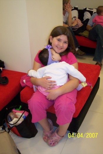 ![]() It's a department store, kind of like Wal-Mart. It has several floors and has escalators without steps so you ride up with your cart at a slant. That was entertaining all by itself! I saw some pretty unusual things (like some kind of large birds that were dried or smoked hanging from the ceiling in a non-refrigerated area), but we didn't have time to really look it all over. In a few days we will take a taxi over and really explore the whole store. I'm looking forward to that. Lydia will have nothing to do with Kyle right now and at some point this morning, stopped letting Sydney hold her and she has mostly wanted to be held all day. About three times today she sat on the bed playing with her stacking cups. She loves those cups. She has one in each hand all the time and I have to pry them out of her hands to change her clothes. I'm so glad we brought them. Lydia seems to have been very well cared for at the orphanage. All five of the babies from there look really great. They have obviously been fed well (which would explain why my arms are so sore). One of the adoptive moms in our group is a pediatrician. That is a huge blessing. She examined each of the babies today. Lydia has an ear infection in one ear so she told me to go ahead and start her on the antibiotics that I brought from her doctor at home.