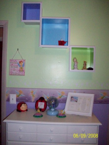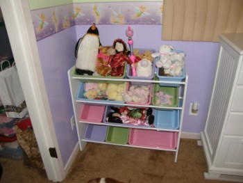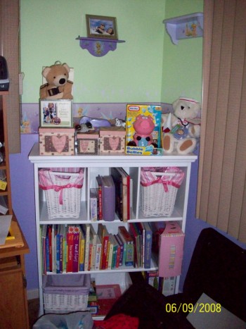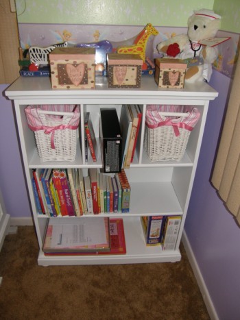 Well this month we added a couple of things to the room. We put together a book shelf...
