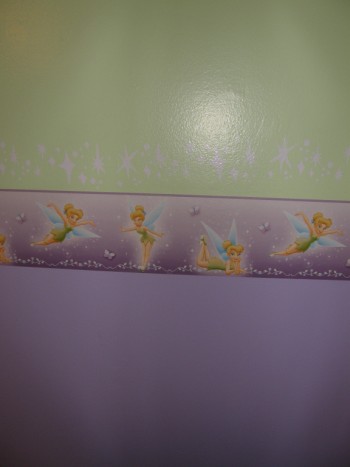 Ok guys... many of you have been asking if we have started the room yet. Well, Antonio painted it for us this month and then I hung the border and did a pixie dust stenciling above it. So far that is as far as we have gotten. I hope you enjoy the pics!