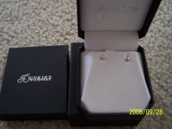 ![]() And, Emma's first pair of gold ball earrings from Dunkin's Diamonds....