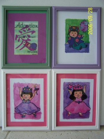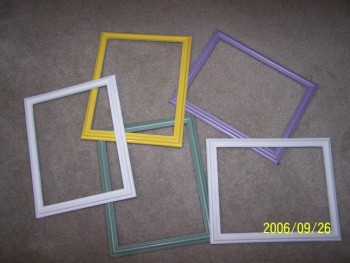 ![]() Well, so now we have frames! And what a cheap way of doing it! Well, maybe not so cheap after we bought the paint. We bought 5 frames from the Dollar Store and 4 cans of spray-paint at Wal-Mart, and sprayed them to match Emma's room colors. So, now I will put some really cute pictures in them that Daddy bought from eBay. I will put them together tomorrow.