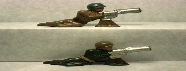B240 Barclay #928 Machine Gunner, Lying Flat (Podfoot, Green/Khaki & Khaki/Green, Ed & Fred (who else))
