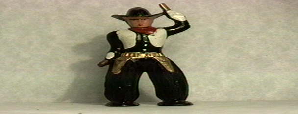 This here is a cute little cowboy. Sometimes he has red guns and sometimes they are gold. The red guns don't have buttons. Anyhow, he's in real fine shape and I just saw one go on eBay for over $30 YIKES! Anyway, Vern was inspired but I think $22.00 is a fine price for the little dude.
