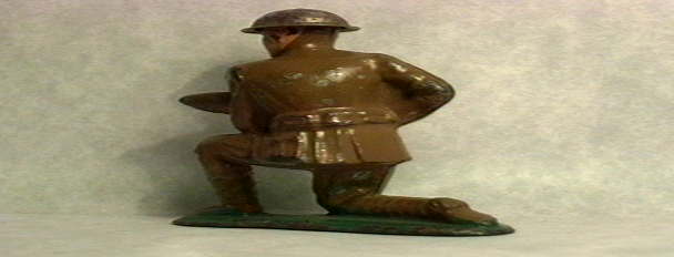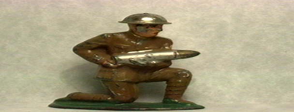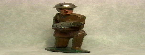 This guy is pretty good with about 90% paint overall. He has a bit of surface rust on his tin helmet which is pinned, not glued. Has chips on the sides of his eyes, almost looks like he has a black eye on the one side. he'll cost you $15.00.