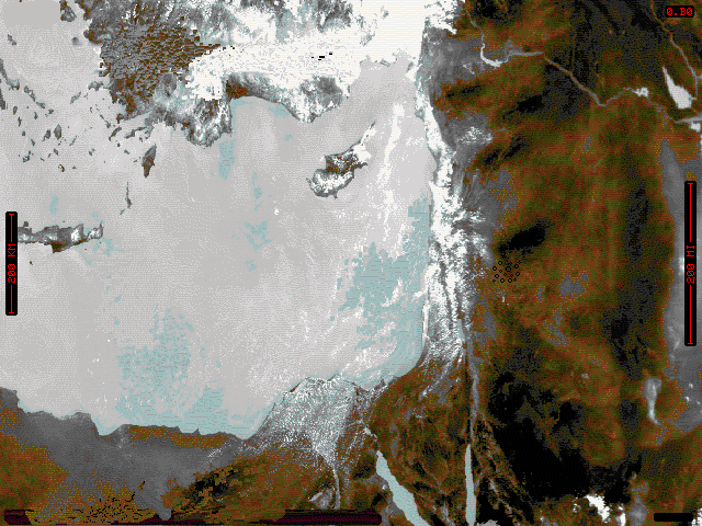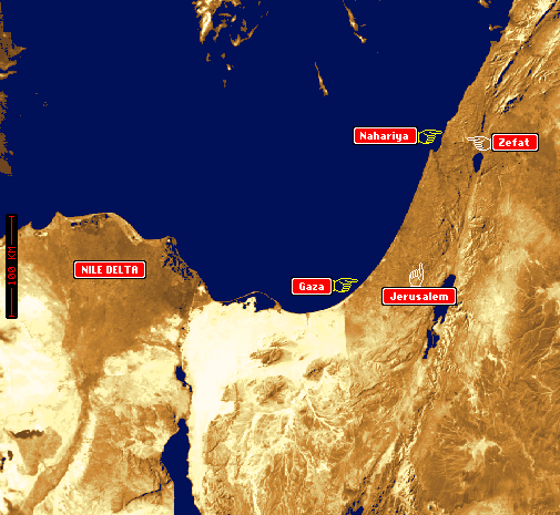 in the eastern Mediterranean .the warm water are in turquoise and the colder