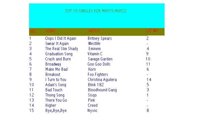 Yeah I know the button says Mp3,but this is the new singles chart page.Each week,I'll update the chart according to which songs I like to listen to.You can help adjust the chart to if you email me a song that you like and we'll see if it makes it.