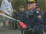 RCMP showering student protesters with pepper spray at the APEC conference.