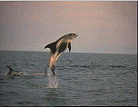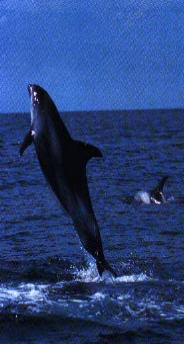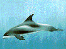 In the sea water, the different white spots on the dolphin will "blend" together to create one white strip.