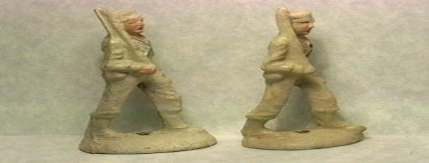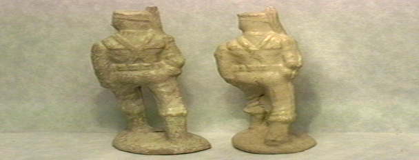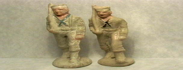 Here we have Ed and Fred in the Navy. I'm not sure if Ed is the tall one or it's Fred. Sometimes they wear each other's uniforms to confuse me. Anyway they are both pretty much mint. The paint on one is flat and dead white, the paint on the other is a bit glossy and ivory. Look close and you'll see the flat white one has a light blue kerchief and the ivory colored guy has dark blue. Either one will run ya $9.00 to your mailbox!