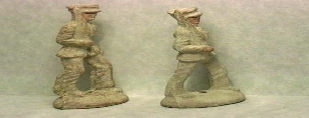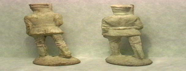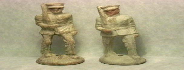 Ed and Fred in the Marines wearing summer whites (I guess). Anyway, one of them must've had a bit too much to drink because he's tilting to one side. You know how those Marines are! The size is different, the paint is different and the figures are a bit different here too. The bigger one has a split in his coat jacket (over his rear), the little one doesn't (but he seems to have a bigger butt!). Ed or Fred $15.00