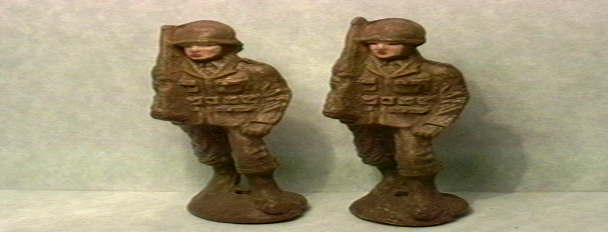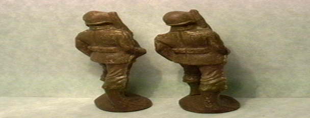 Ed and Fred here! Everyone's favorite uniform models. Here our dashing twosome is wearing the WWII style pots and fatigues. Don't they look young? Anyway, the paint is excellent on these guys and the figures are in great shape too. Rodney's Price is $15 for the pair!
