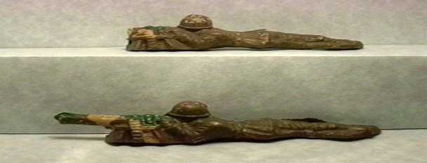 Here we have Ed and Fred. Old Ed has broken off his barrel, but Fred will shoot enough nasty nazis to make up for it! Their paint is exceptional for old moldeds. They must go as a pair! $12.00 and they are YOURS!!!