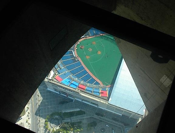 A Blue Jays game in Skydome seen from the CN Tower