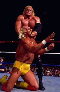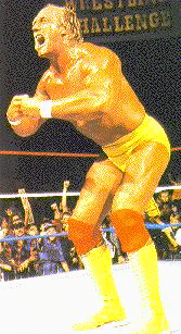 Here is a huge variety of Hulk Hogan pics from the Hulkamania era in the WWF. I will continue to add more pics so please come to my site often. Hulk Hogan started wrestling in late 1978 in smaller wrestling organizations. After years of hard work, Hulk Hogan joined the Vince McMahon, Jr.'s World Wrestling Federation. Hulk Hogan became a star babyface after his role in Rocky III as Thunderlips. Hogan won his first WWF World Title in 1984 when he defeated the Iron Sheik. Hulk retained the belt until WrestleMania IV in 1988 when he lost the rematch to Andre the Giant. Hogan gained it back at W.M. V when he defeated Macho Man Randy Savage but lost it at WM VI to the Ultimate Warrior. Hogan got the belt back again when he defeated Sergeant Slaughter at WM VII. Hogan then lost the belt to the Undertaker at Survivor Series but he won it back from him later on. Hogan then lost the belt again but he won it back from Yokozuna. Hogan then lost from Yokozuna at King of the Ring and later on left the WWF from the steroids trial with Vince McMahon. Hogan then went to WCW and that is where I stopped being a Hulkamaniac. I have never liked WCW except for Sting and Goldberg. Hulk Hogan fought in 9 WrestleMania's and he was in 6 main events at WrestleMania. Hogan will bring Hulkamania back to WCW a few weeks before Bash at the Beach '99. He will fight Goldberg at the main event and beat him for the title. Rumors say that Vince McMahon is trying to rehire Hogan and bring back the "original" Hulkamania in the WWF. I think Hulk Hogan and Andre the Giant tie for first for the wrestler who made the most impact in any wrestling organization.