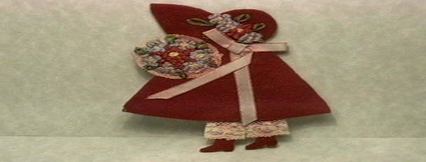 Here are 2 cute little sunbonnet girls from the early 1900's. At least the lady who made them was from that era. I still have the envelopes she kept them in, but Hurricane Floyd flooded them and they're kinda messy now. That means these little ladies also got good and wet and the red one bled all over the lace and ribbon. She already had a bit of moth damage on one foot too. The black one did not bleed and ribbon and lace are still very nice. They are both identical and measure aout 5" tall and about 3 1/2" at the widest. $25.00 and you can give these poor little flood victims a good home!