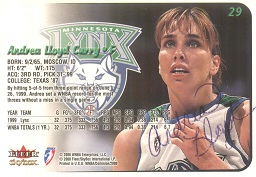 Andrea Lloyd Curry (Played in the American Basketball League with the Columbus Quest from 1996-98 and in WNBA with the Minnesota Lynx in 1999-00. She also was a member of the 1988 gold medal-winning USA Olympic Team and signed in 8 days) rec'd 11-03-17