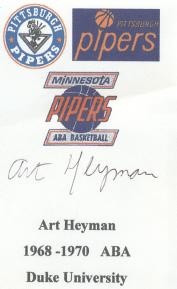Art Heyman (Guard played from 1964-70 for the New York Knicks, New Jersey Americans, Miami Floridians & Pittsburgh Pipers. This was a gift) rec`d 08-03-06