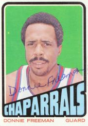 Donnie Freeman (Guard played most of his career in the former ABA, his career covered 1968-76. He played for several teams including the Minnesota Muskies, Texas Chaparrals, Utah Stars & Dallas Chaparrals. He signed in 6 months) rec`d 9-19-05