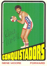 Gene Moore (Forward spent seven seasons (1968-75), playing in the former ABA for the Kentucky Colonels, Texas/Dallas Chaparrals, New York Nets, San Diego Conquistadors & Spirits of St. Louis. He signed in 28 days) rec'd 12-18-17