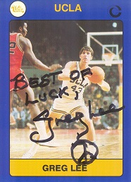 Greg Lee (UCLA guard played from 1971-74 and was a three-time Academic All-American. He also competed in the ABA (San Diego Conquistadors) & NBA (Portland Trail Blazers). He signed in 1 year) rec'd 01-17-17