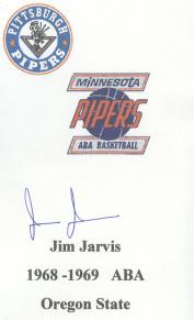 Jim Jarvis (Guard played for the Pittsburgh Pipers, Los Angeles Stars & Minnesota Pipers from 1968-69. This was a gift) rec`d 08-03-06