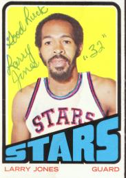 Larry Jones (Guard played eight seasons from 1964-74 in both the NBA & ABA. His ABA days were spent with the Denver Rockets, Florida Floridians' & Utah Stars. He averaged more than 20 points a game for four straight seasons. He signed my card in 5 months) rec`d 2-16-05