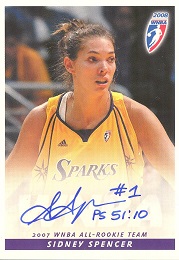 Sidney Spencer (Guard played for several teams including the Los Angeles Sparks and was pulled from a pack of cards)