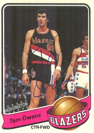 Tom Owens (Center played for several teams from 1971-83 in both the ABA & NBA, including the Kentucky Colonels & Carolina Cougars. He signed in 1 week per Sports Collectors Net) rec'd 03-21-16