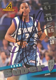 Tora Suber (Guard played for the Charlotte Sting and Orlando Miracle from 1997–99 and signed in 56 days) rec'd 02-20-