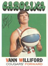 Vann Williford (Played in the ABA during the 1970-71 season for the Carolina Cougars, he signed in 1 week) rec`d 06-27-08