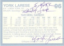 Dick Grubar (Former UNC point guard played from 1967-69 and one season in the ABA for the Indiana Pacers. He signed in 16 days) rec'd 04-16-15