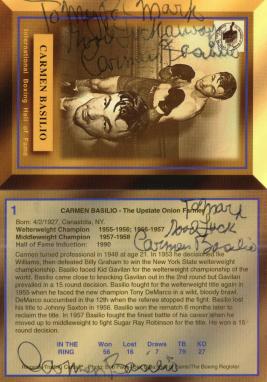 Carmen Basilio (Former champion in both the weltherweight & middleweight divisions, his career covered 1948-61. He signed in 2004 and passed away on 11-07-12)