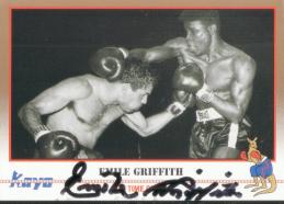 Emile Griffith (The first fighter from the U.S. Virgin Islands ever to become a world champion, he won a New York Golden Gloves title and turned pro in 1958. He earned a shot at the welterweight title and knocked out Benny Paret in the 13th round to become World Champion. During his career he won 85 lost 24. He signed in 2003 and passed away on July 23, 2013)