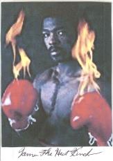 James Buster Douglas (Scored the biggest upset in boxing history by knocking out previously undefeated Mike Tyson to win the undisputed Heavyweight Championship on the World in 1990. He signed my card in 4 months) rec`d 6-22-01