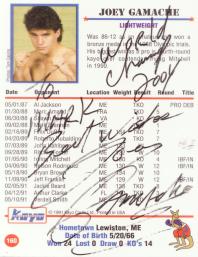 Joey Gamache (Former World Champion in the lightweight division also won a bronze medal in the 1988 Olympic trials. He signed in 26 days) rec`d 8-28-04