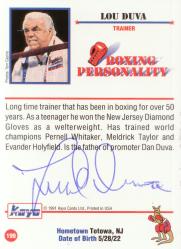Lou Duva (One of boxings best known trainers has worked with World Champions Pernell Whitaker, Meldrick Taylor & Evander Holyfield. He signed my card in 2001 and passed away on March 8, 2017)
