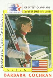 Barbara Cochran (Gold medal winner at the 1972 Sapporo Winter Olympics in the slalom. She signed my card in 6 months) rec`d 5-20-02