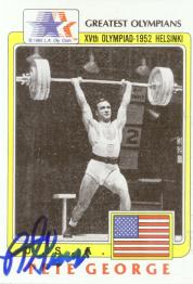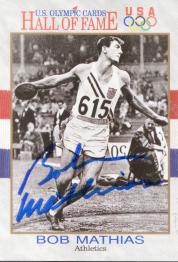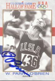W. Parry O`Brien (He won Gold Medals at both the 1952 Helsinki Olympic Games & 1956 Melbourne Olympics. Also, won the Silver Medal in the 1960 Rome Olympic Games, during his athletic career he broke the world record sixteen times and was the first man to pass the 18-meter an 60 foot-barriers. He signed my card in 10 days) rec`d 01-23-01