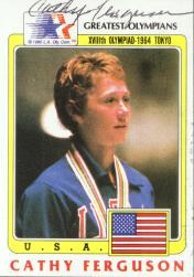 Cathy Ferguson (Swam the lead-off backstroke leg as U.S. women easily won the 400 meter medley in world record time. This was her second gold medal of the Olympics as she also won an individual title in the women's 100 meter backstroke event. She signed my card in 20 days) rec`d 08-06-01