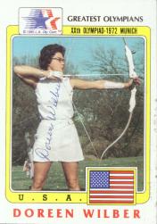 Doreen Wilber (Gold medal winner for womens archery in the 1972 Munich Olympics, she was a two-time national champion & twice runner up at the world championships. She signed my card in 5 days) rec`d 12-21-02